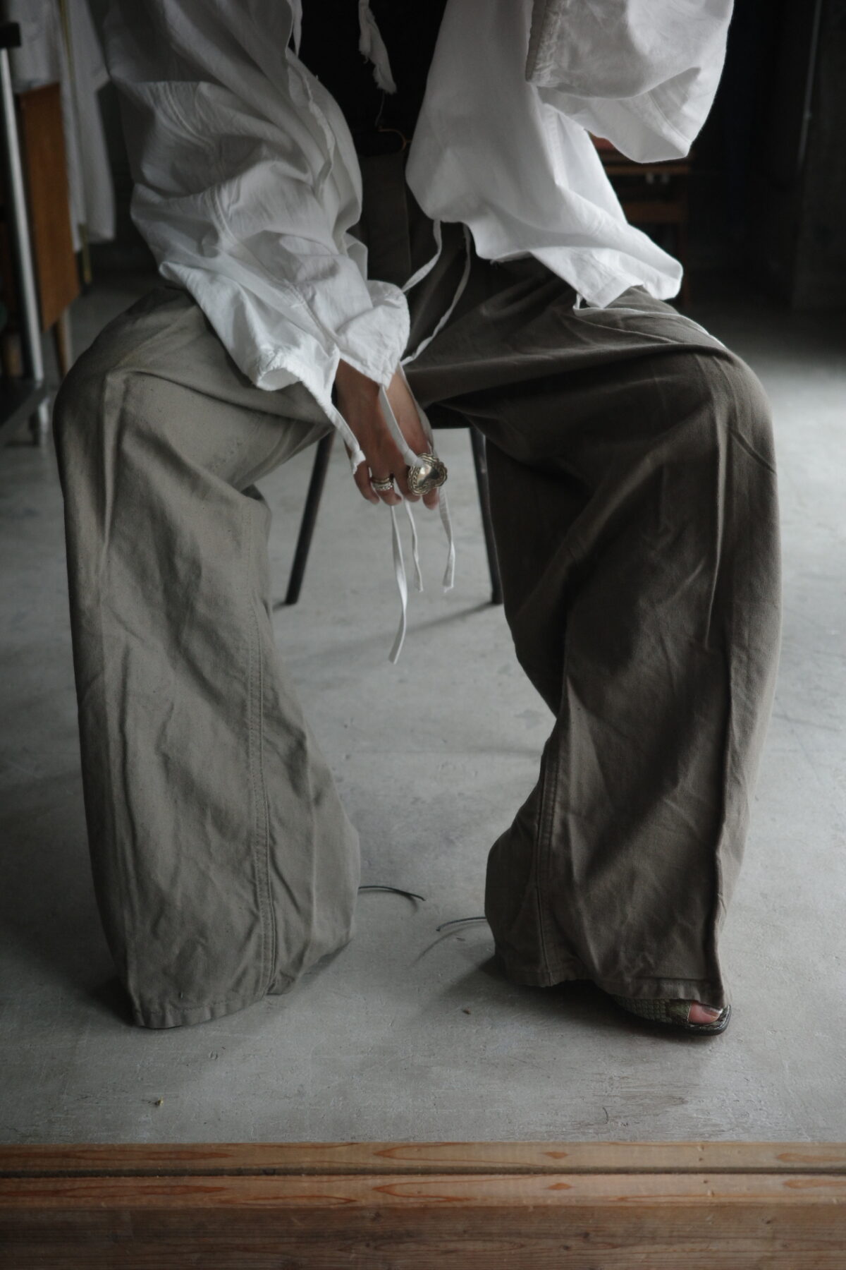 ミリタリーボトムの中でも珍しいグレーの様な色味。
