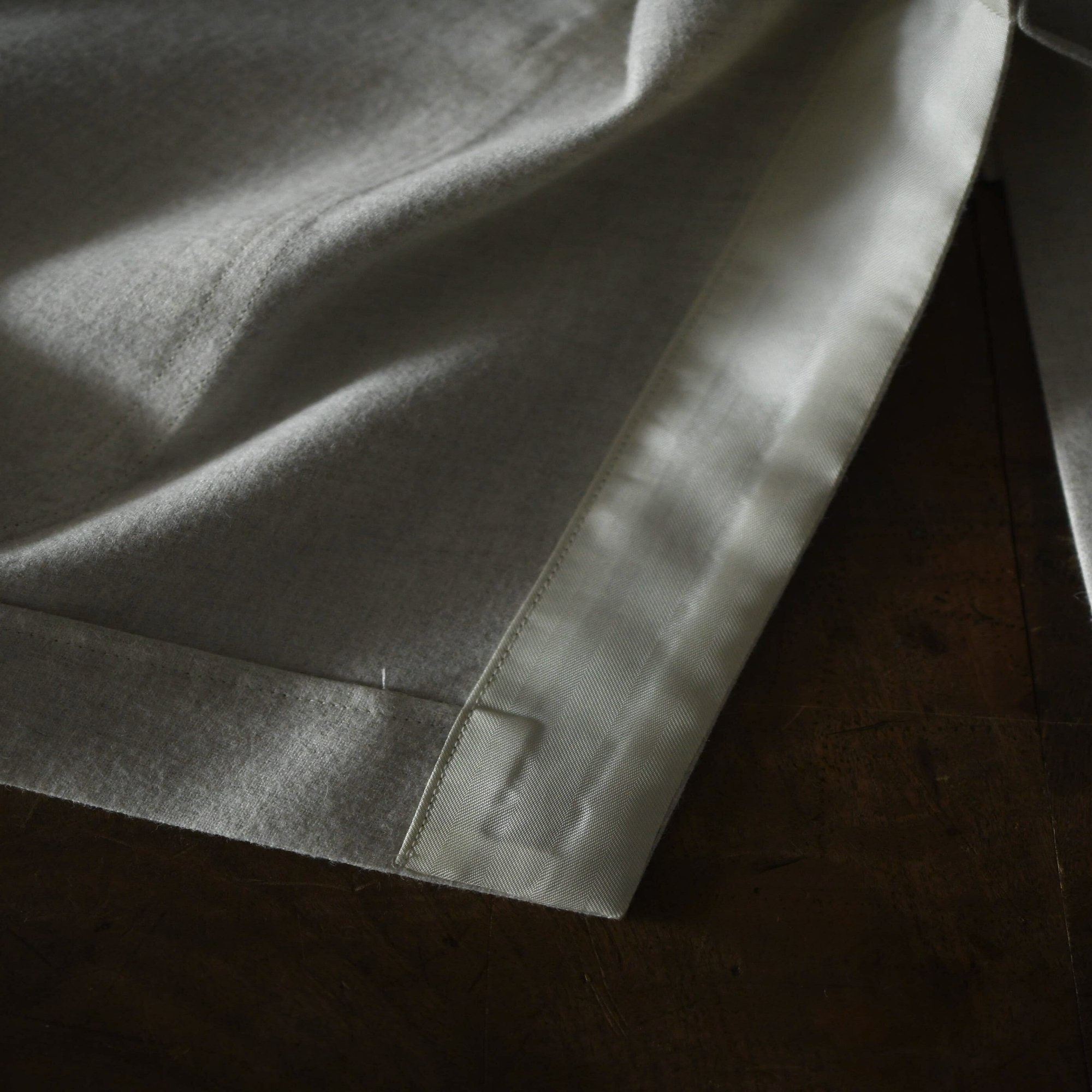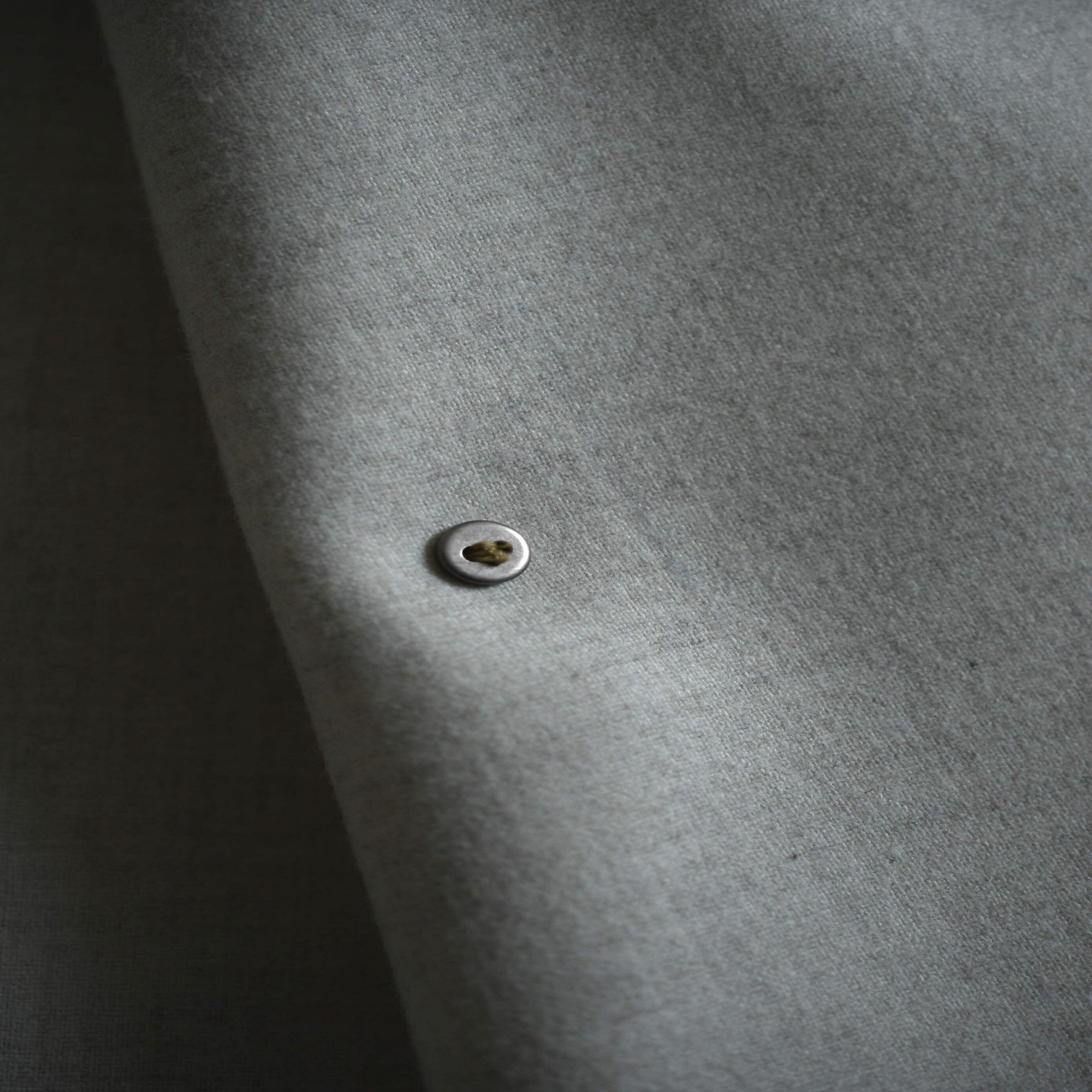 身幅や腕周りはしっかりと余白が設けられているため、中に忍ばすインナーは肉感のあるニットもスウェットも許容してくれる。それでいて、仕立てが一重である事と生地の特性が相乗して美しいドレープが生まれる分、カットソー合わせも相性が良く、春先まで十分に着続ける事が可能。