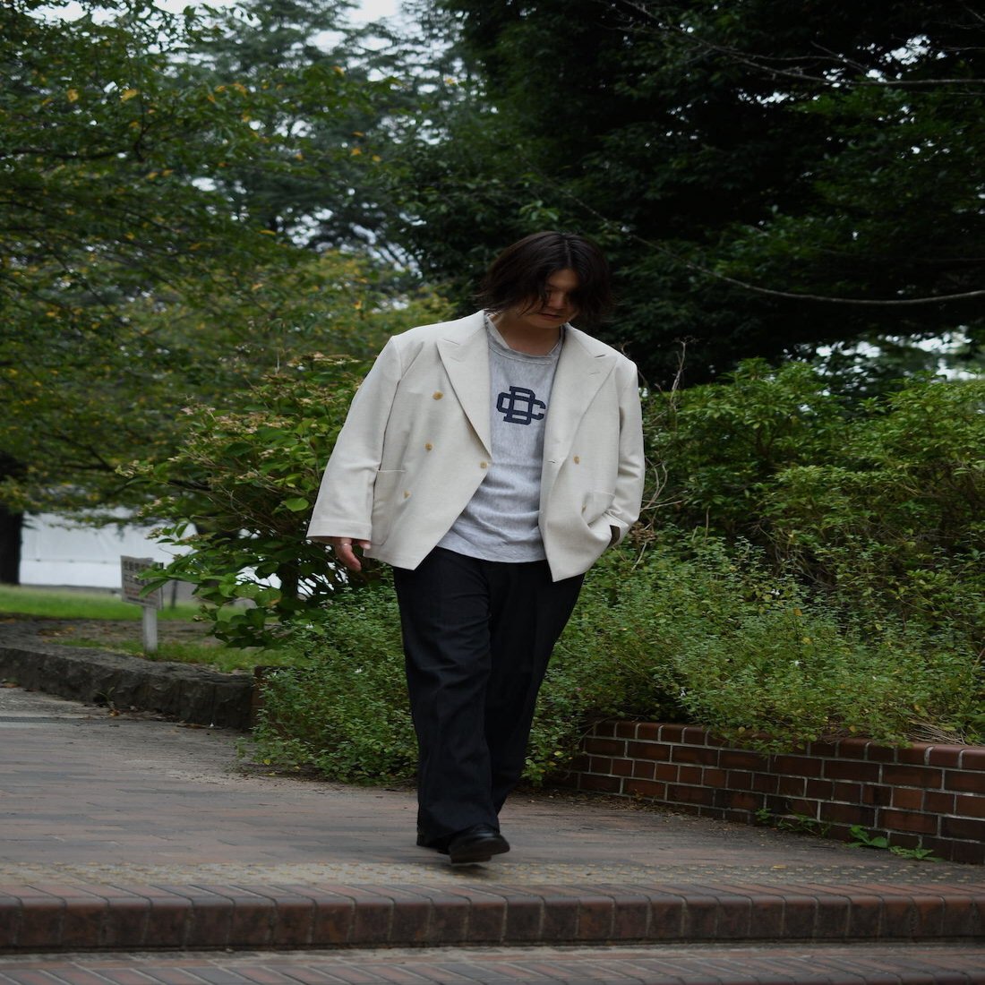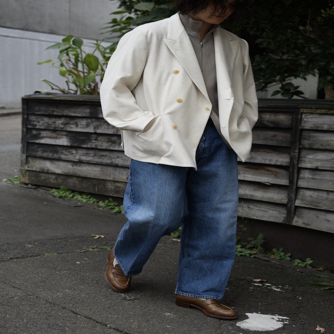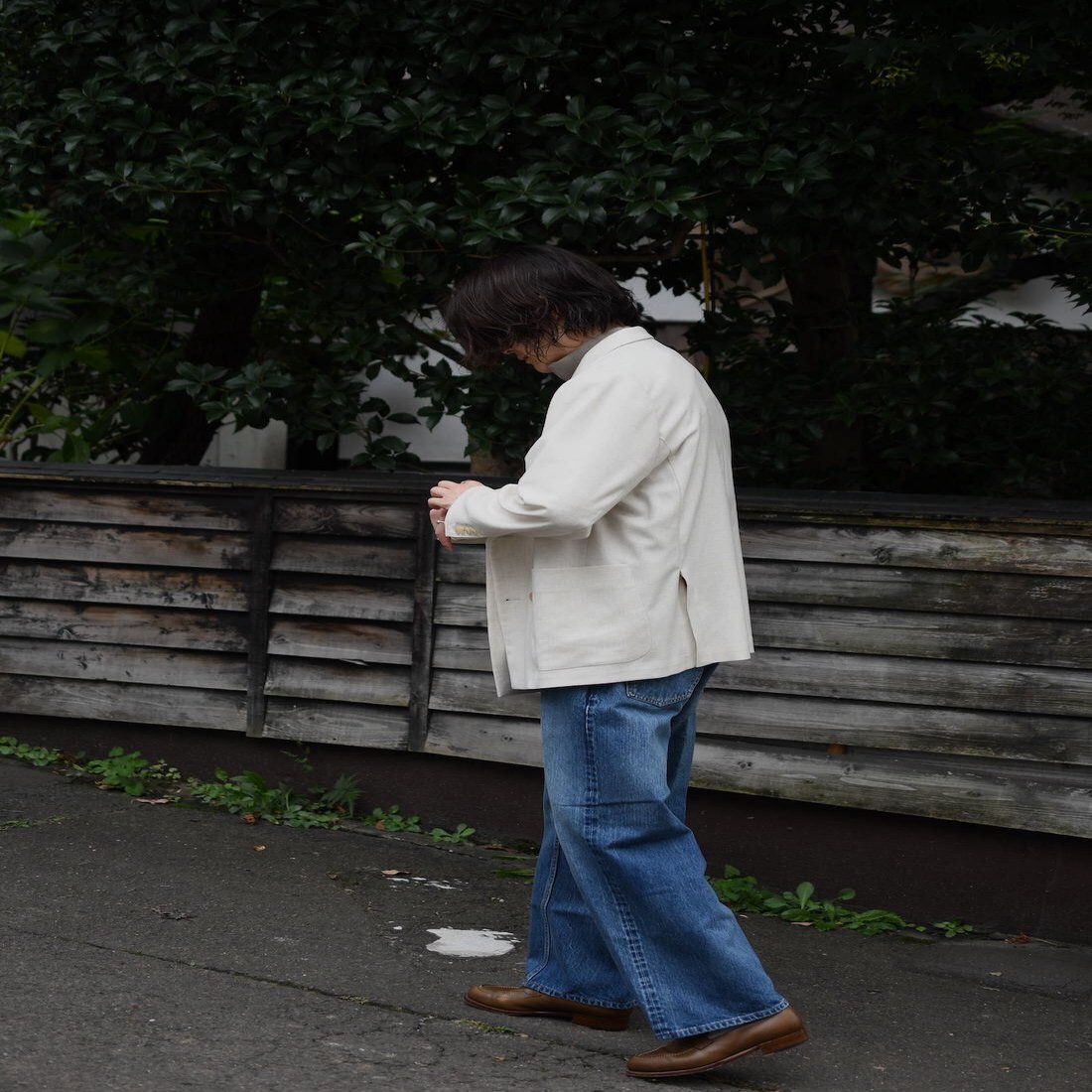 また名称にもある通り、幅感に自然と沿うようシルエットはボクシーだが、サイドベントの深さによりしっかりと動きが出てくれる為、カジュアルな引き算が組み込まれながらも纏った時の出立ちには確かな品がある。
