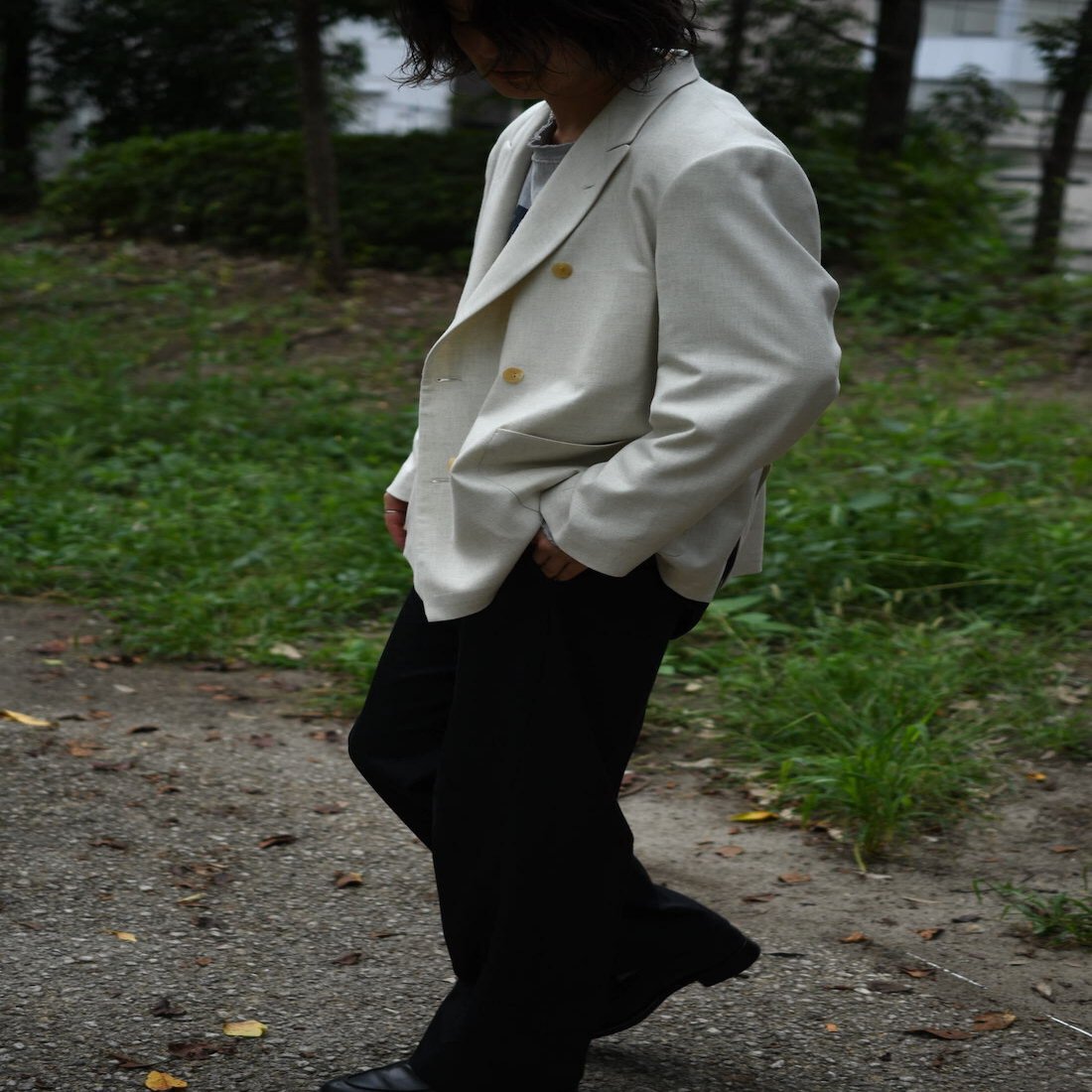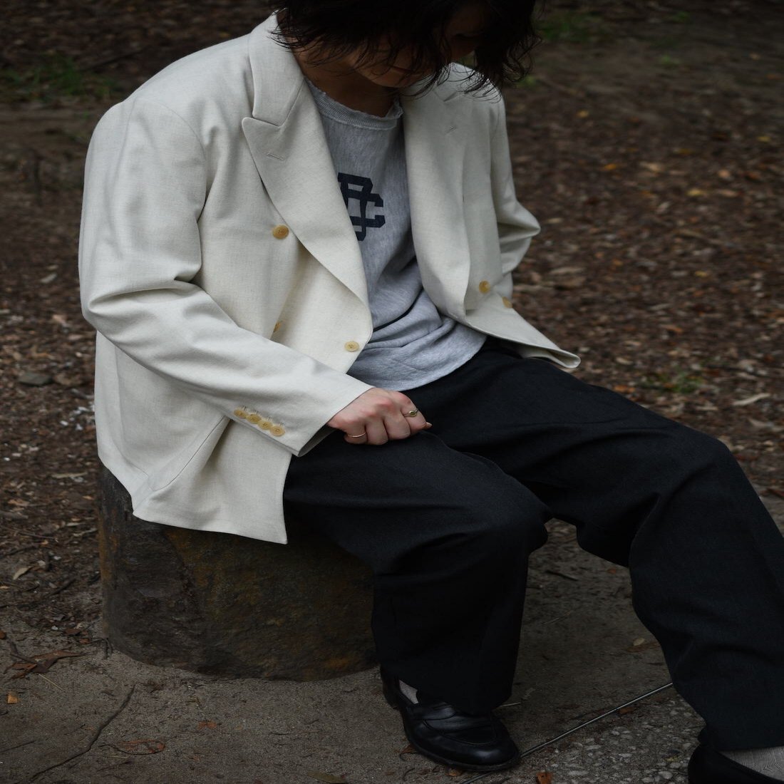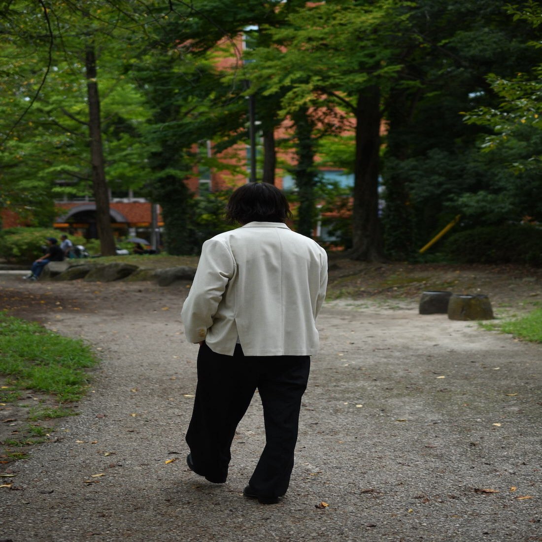また名称にもある通り、幅感に自然と沿うようシルエットはボクシーだが、サイドベントの深さによりしっかりと動きが出てくれる為、カジュアルな引き算が組み込まれながらも纏った時の出立ちには確かな品がある。