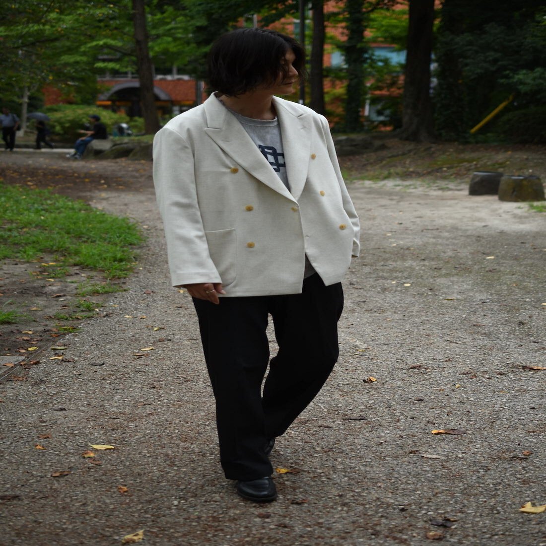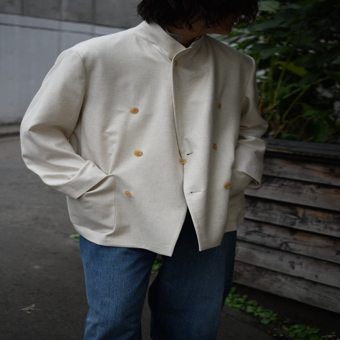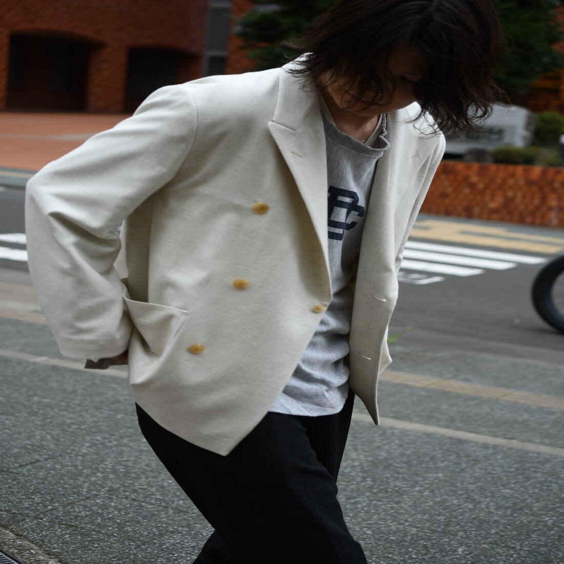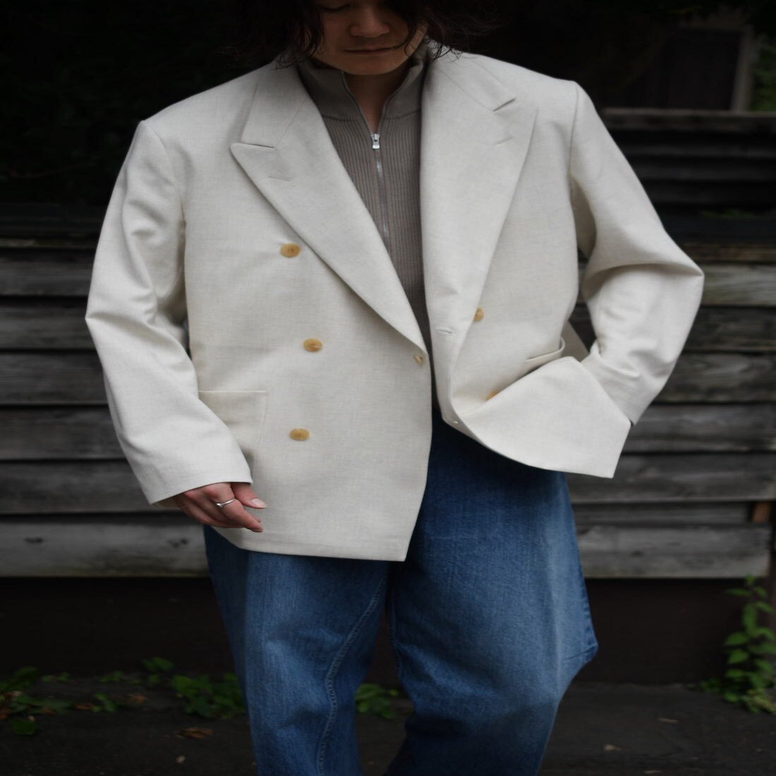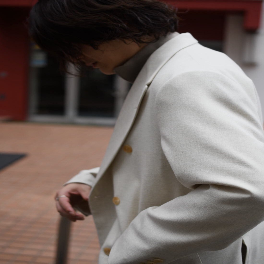ナチュラルな風合い漂う空気感の中に、少しだけモードなニュアンスも感じさせるANTOS.のダブルジャケット。